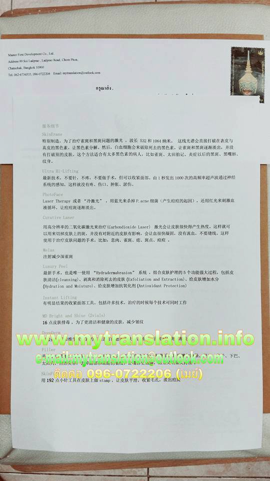 ติดต่อสอบถาม แปลเอกสาร 062-6736533 Line id: mytranslation ได้ตลอด 24 ชม.